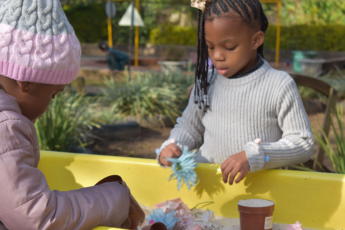 During this time, the children can choose any of the five, fully supervised play areas while those who choose to not utilise a specific area, will be encouraged in order to ensure they benefit developmentally from the full range of available activities. The older Groups also do Plan-do-review, where they choose a few specific play activities during Good Morning Ring, which they have to remember to carry out and then review their choice at the end of the morning. The children always help to tidy-up the indoor areas as these rooms are then utilized for the following routines.