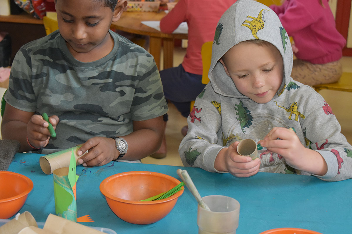 Painting, drawing, cutting and gluing, dough play and a ‘special’ activity - all of which are changed daily.